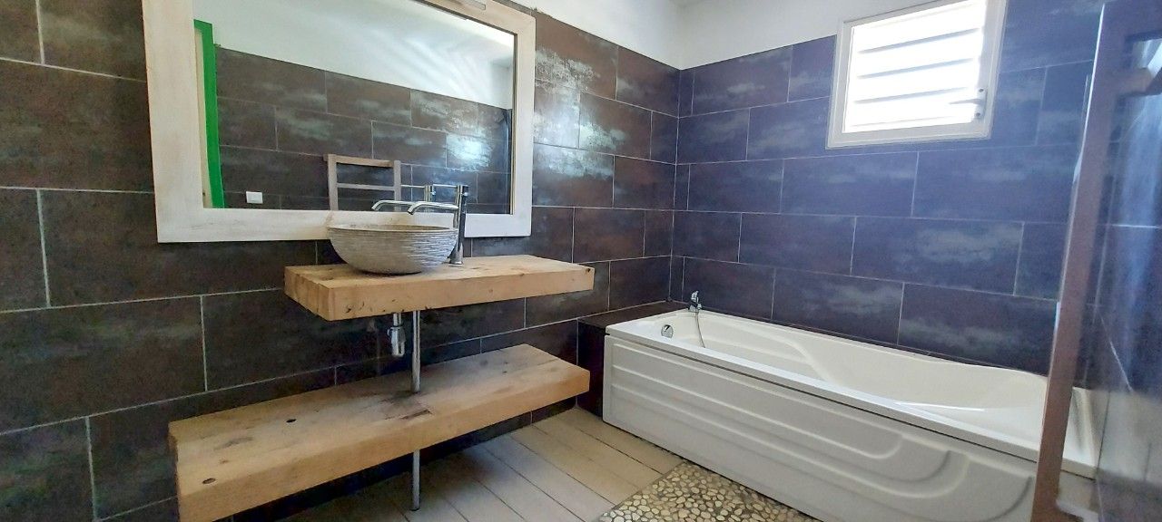 Situé au coeur du Col de Tonghoué, dans l'ensemble immobilier Les Résidences du Parc, venez découvrir cette villa appartement mitoyenne offrant un bel espace jardin arboré et un gazebo "Balinais". L'appartement s'ouvre sur le séjour avec coin cuisine équipée, buanderie avec pompe à chaleur, w-c séparé, une première chambre parentale avec placards, et salle d'eau attenante. A l'étage, un palier, trois autres chambres avec placards, une seconde salle d'eau avec baignoire et w-c. Le séjour s'ouvre sur une belle terrasse en deck couverte et le jardin laisse place à une piscine ou un spapool au milieu de la nature du Col de Tonghoué.