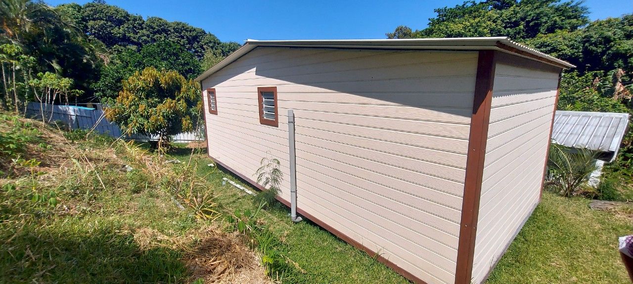A SAISIR sur un terrain de 5 ares bien situé dans une rue calme et agréable du Vallon Dore, un Bungalow sur pilotis en structure légère clin et toiture tôles, comprenant deux pièces chambres et une petite pièce qui devait être la salle d'eau mais qui n'a pas été réalisée. Bonne construction à équiper. En annexe, une construction sur dalle béton et structure en clin, étant d'origine le garage sommaire qui a été aménagé avec sanitaires, évier et bac à douche. Un carport en tôles sur pannes galva devant le garage. Exclusivité à saisir et à négocier avec Sophie au 78 37 04